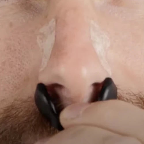 De binnenzijden van het Bandje raken net de buitenste, breedste delen van zijn neusgaten. Dit is precies goed.