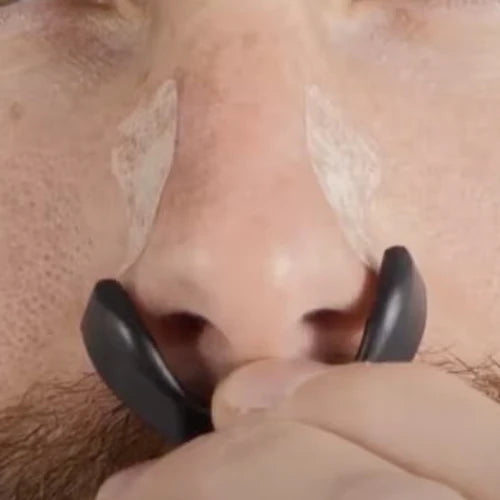 De binnenzijden van het Bandje raken de neusgaten helemaal niet. Dit bandje opent de neus té ver, wat ertoe kan leiden dat de plakkers loslaten.